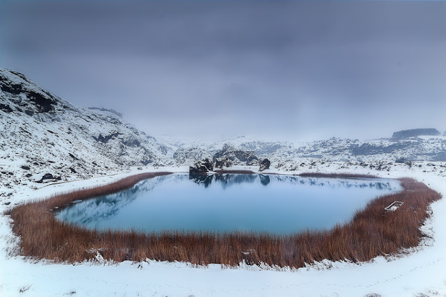 Cuando en ese bonito paseo con mis padres, eché un vistazo a lo que había debajo del acantilado, la escena me pareció bastante terrorífica. Lo que vi fue una zona árida de escasa vegetación, algo de por si poco atrayente para un niño, pero lo que más miedo me dio fue el lago. Era marrón y el agua parecía densa, ni agua, barro, tenía la densidad justa para engullir a un niño lo suficientemente insensato como para acercarle a "ello". Recuerdo que corrí hacia mis padres y no volví a mirar en todo el paseo.
